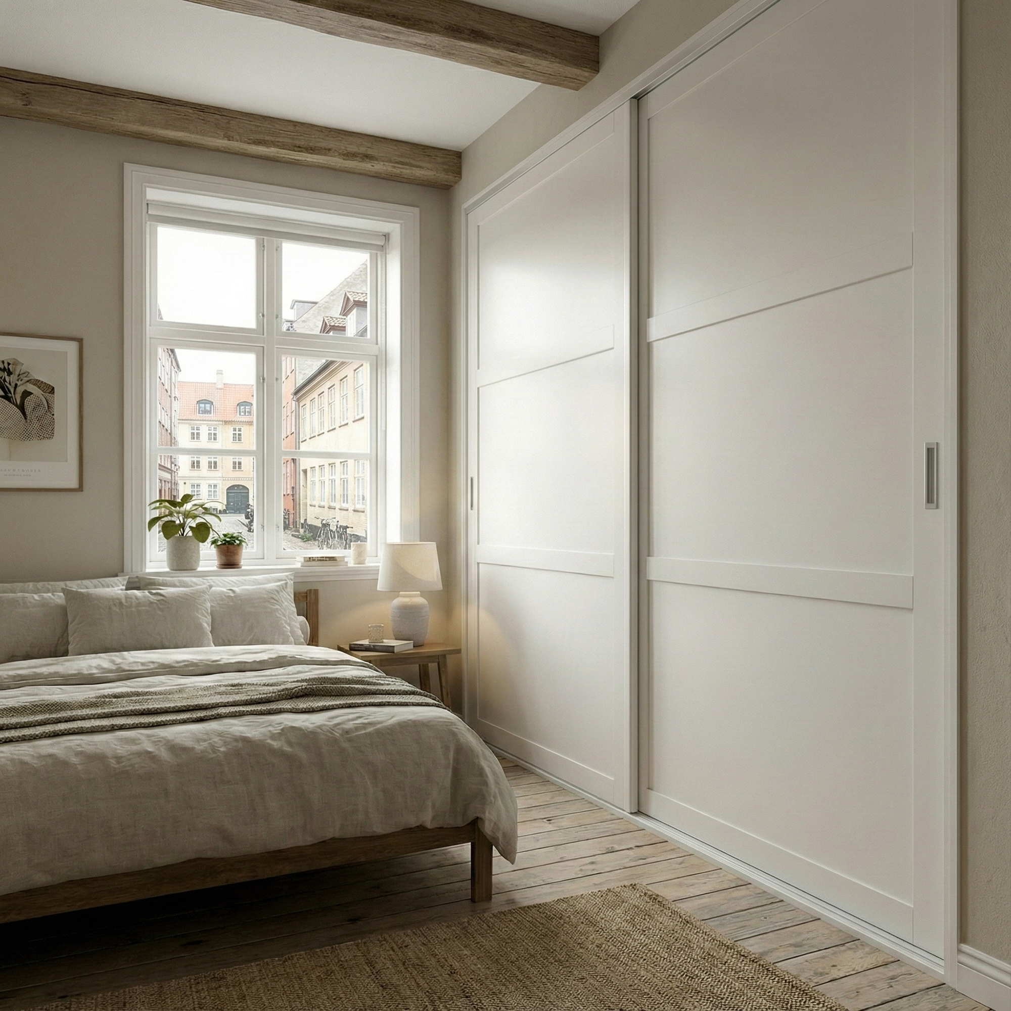 2st skjutdörrar från bredd 92 - 125 cm. Priset är inkl. soft-close, skena och beslagslåda.