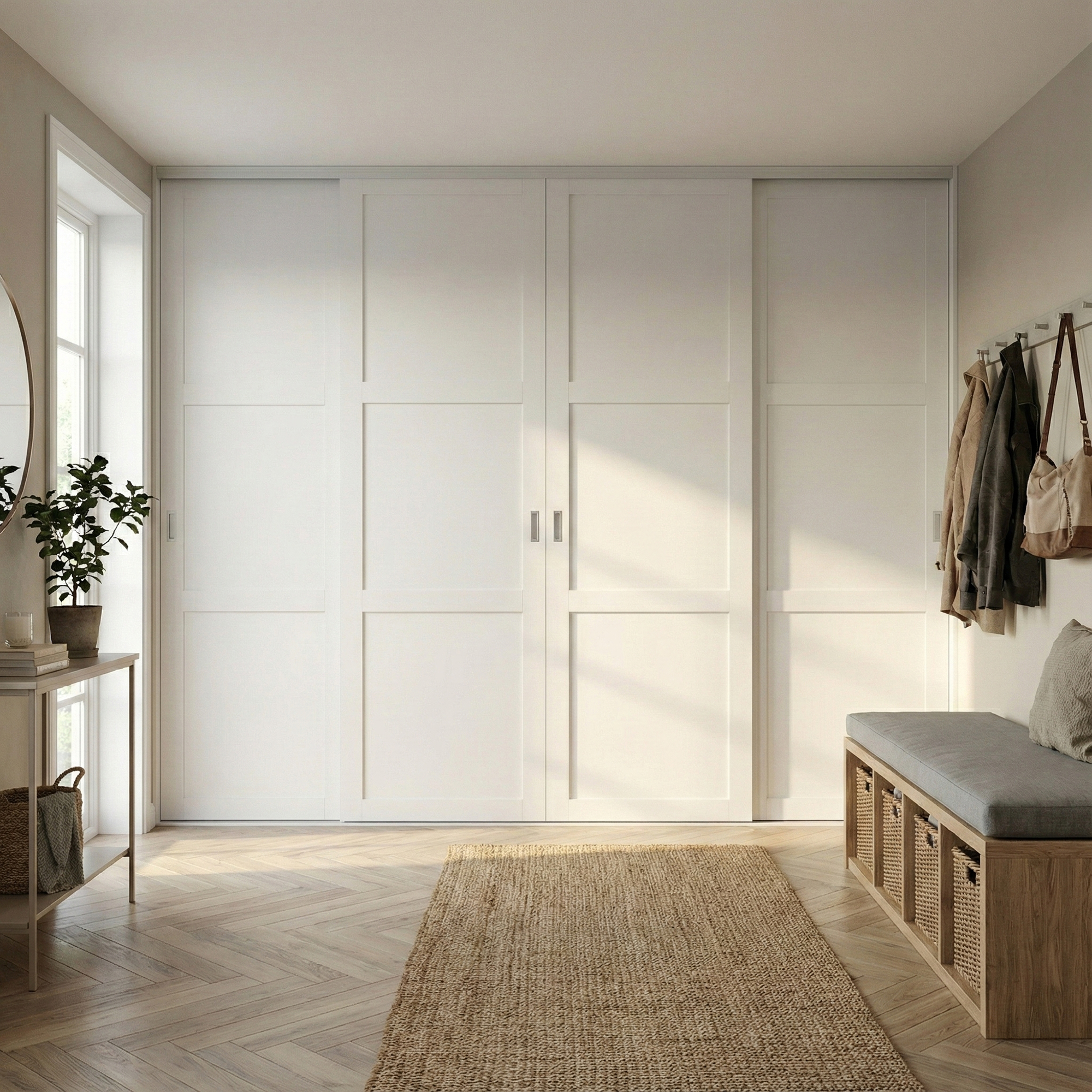 4 skjutdörrar från bredd 376 - 483 cm. Priset är inkl. soft-close, skena och beslagslåda.