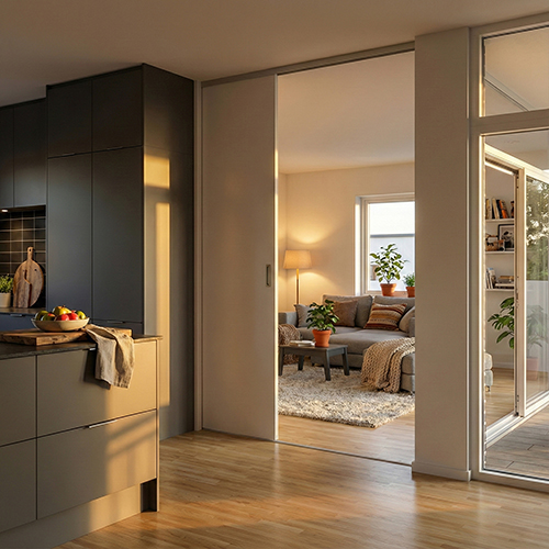 Elegant, slät skjutdörr från golv till tak