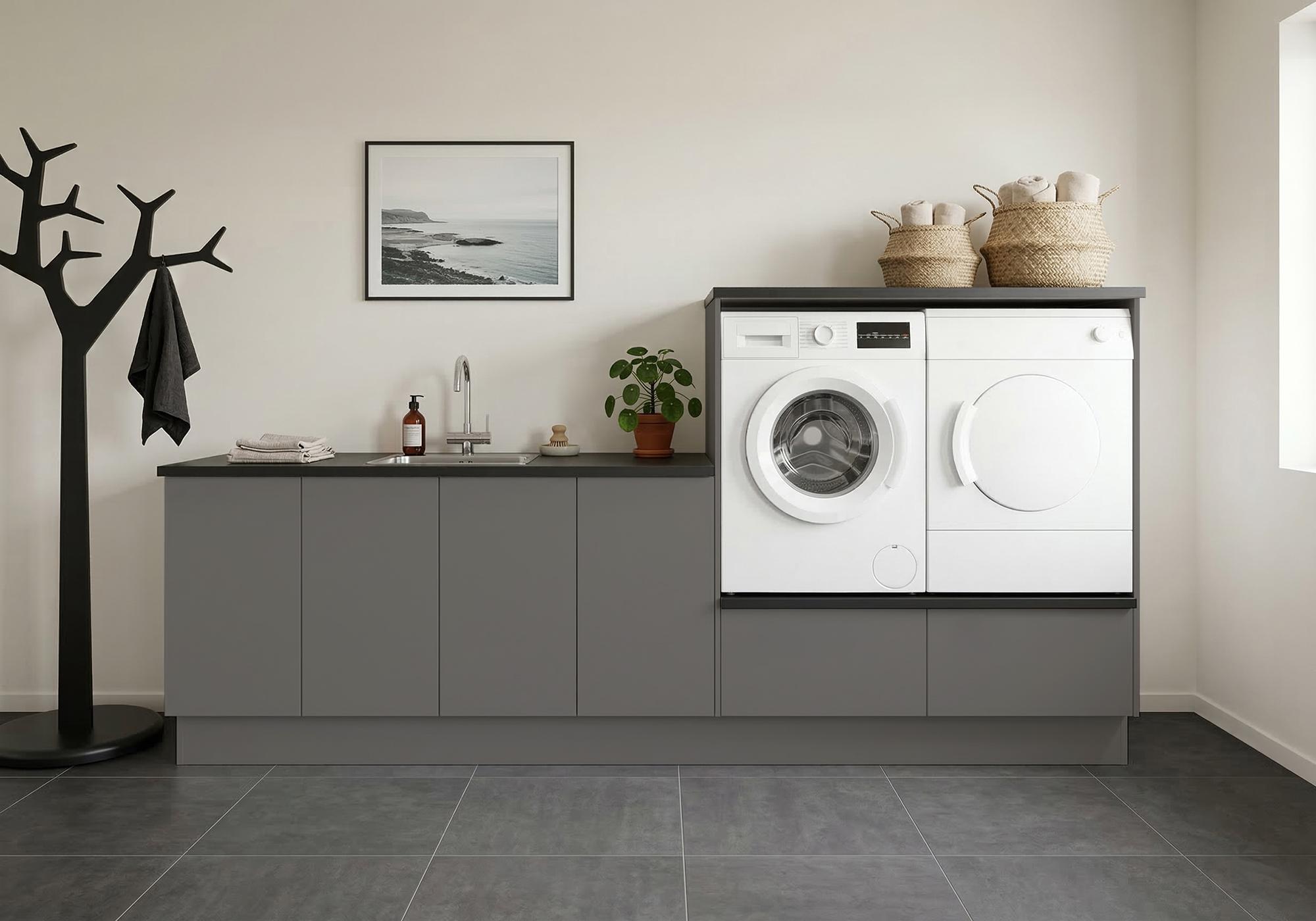 Multi-Living Bryggers sæt med Cibo Grigio | Underskab m. skuffe, Vaskeskab, Gavle, Sokkelsæt - Bryggers sæt 1
